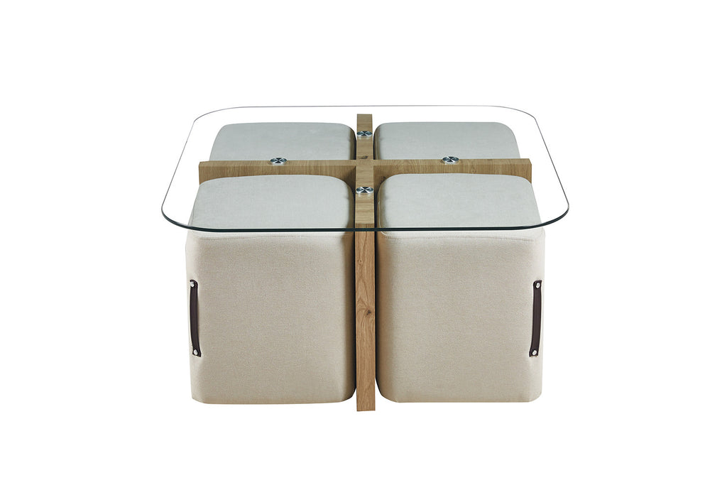 Que vous souhaitiez apporter une touche de modernité ou sublimer un style plus traditionnel, cette table basse effet bois plus verre avec pouf s'adapte harmonieusement à tous les types d'intérieurs, devenant un véritable atout décoratif.