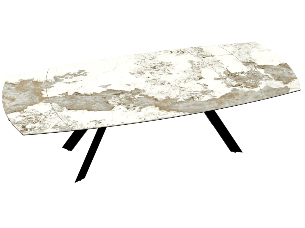 Recevez vos convives avec élégance en compagnie de la table de repas Missouri. Ce modèle au style contemporain est conçu à partir de matériaux de haute qualité. Son plateau en céramique Marbre de 6 mm est collé sur un verre de 8 mm Son piétement longiligne en acier laqué noir mat accentue son allure moderne. Équipée de deux rallonges latérales de 40 cm, la table Missouri passe de 1,50 m à 2,30 m de longueur pour une largeur de 1,10 m. Elle peut accueillir 8 à 10 personnes.